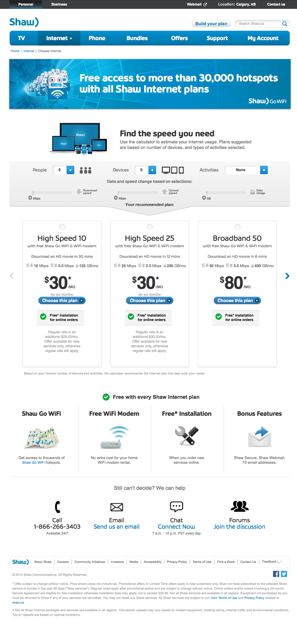 Approach: Together, with the working team and Product lead, we created a page to educate users about Internet speeds and help them choose the plan that is right for them based on their household usage.